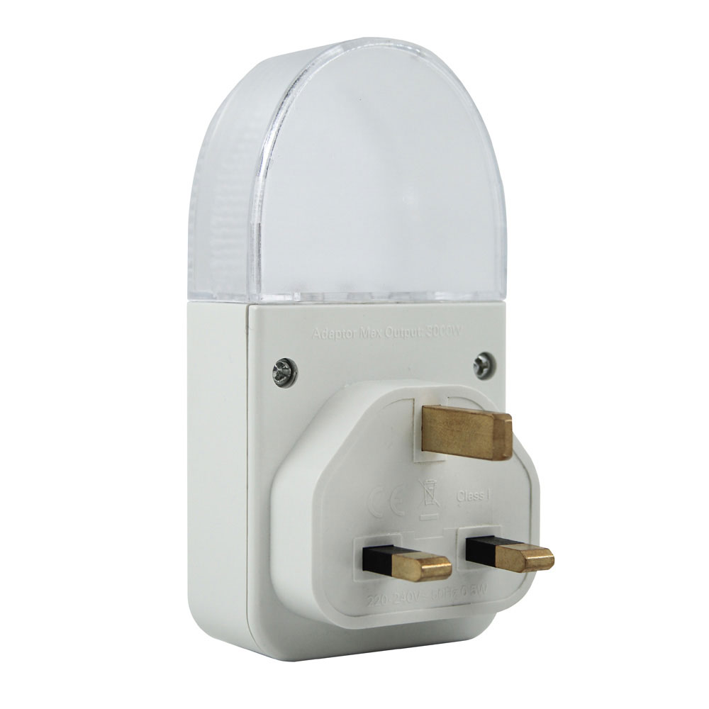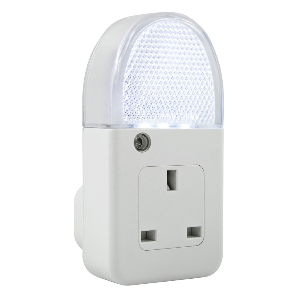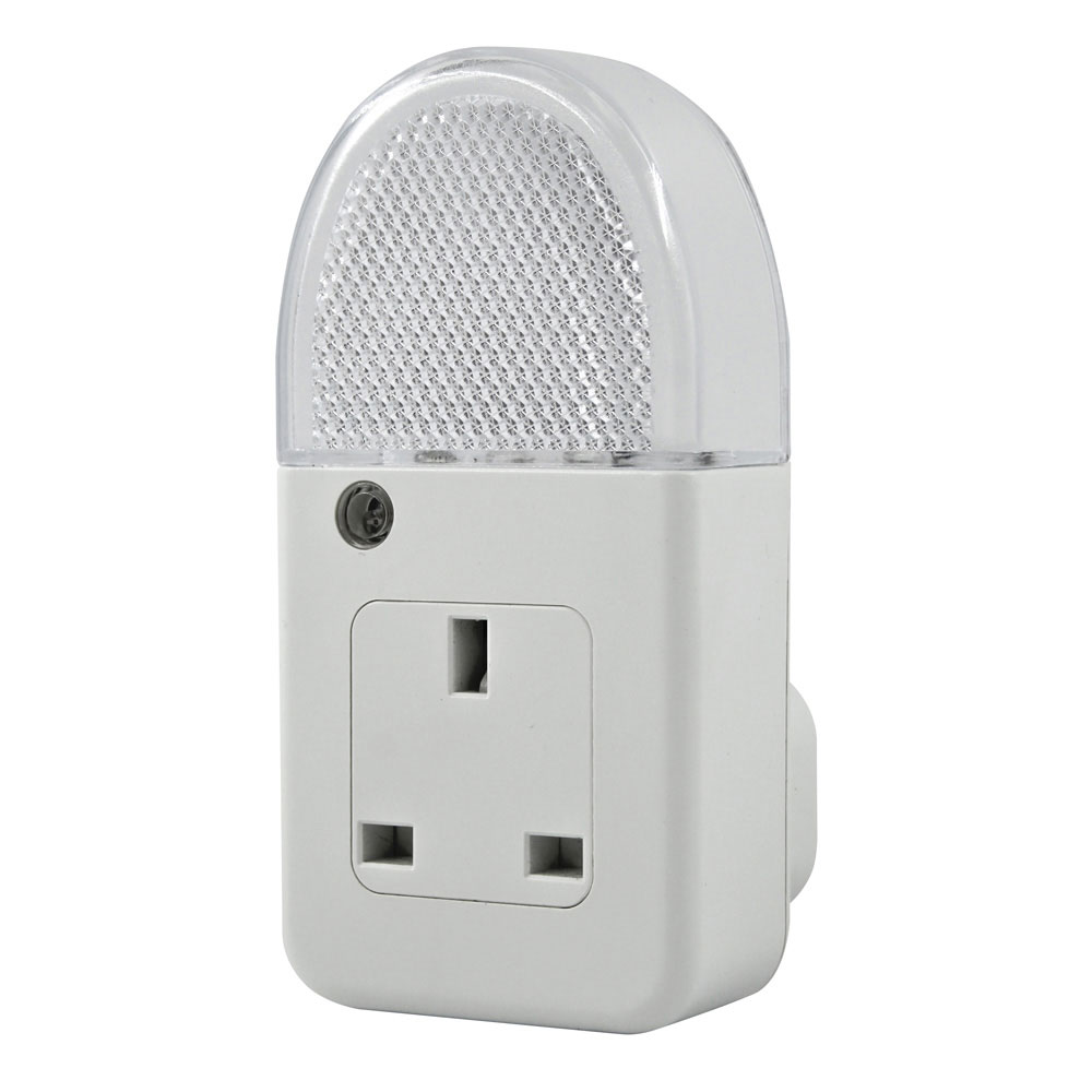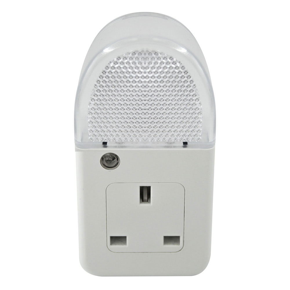 The Uni-Com plug-through night light provides a soft light which automatically switches on when it gets dark, and off when daylight returns, while also leaving the mains socket available for use with other appliances.