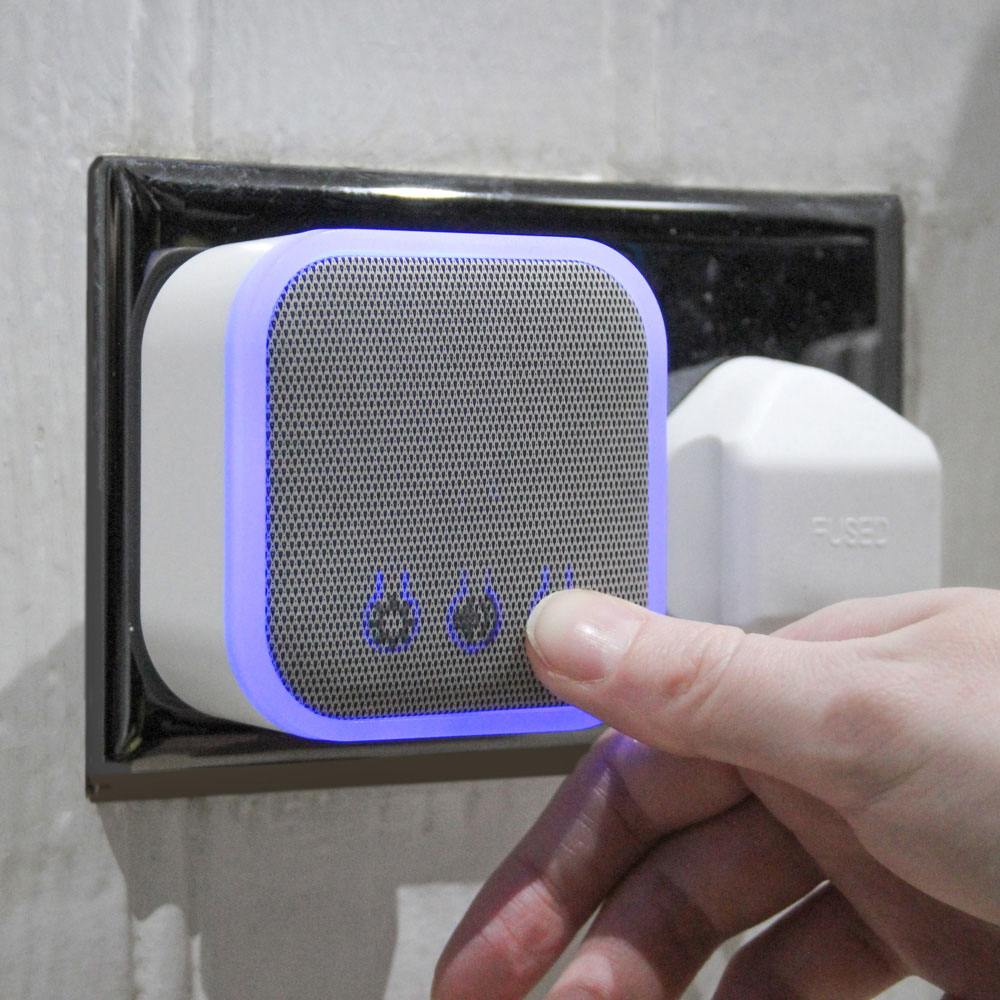 Wire-free door chime that simply plugs into any 13A socket around your home. The Door Chime is wireless, so no wiring is required, and with an extensive operating range of up to 150m, you never have to miss a visitor or delivery. With 30 different chime melodies to choose from, 90dB(A) sound output with volume control and a flashing blue chime alert, you will always know when somebody is at your door.
