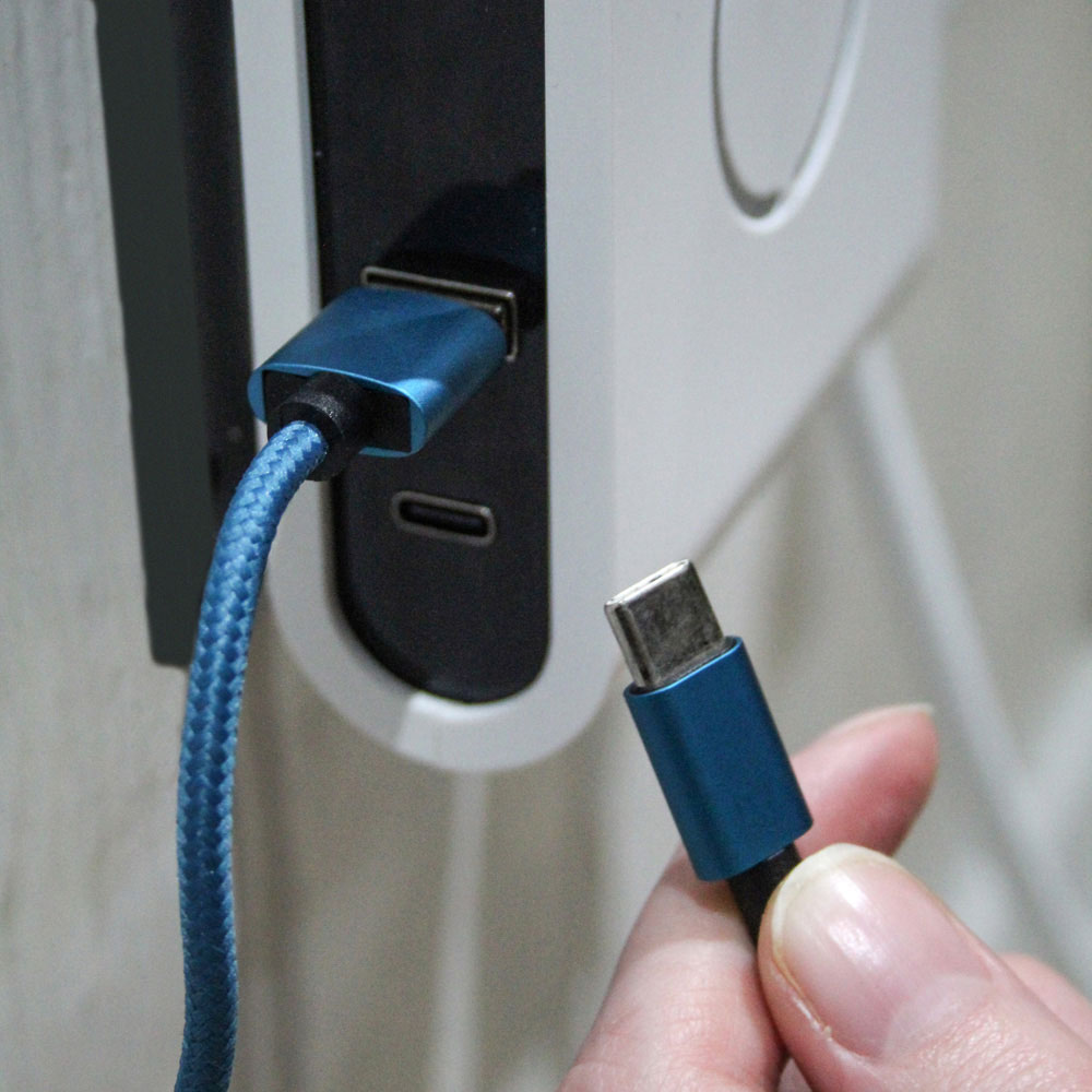 The USB-A and USB-C sockets enable charging of mobile phones and other devices, and the handy shelf will hold a mobile phone while charging.