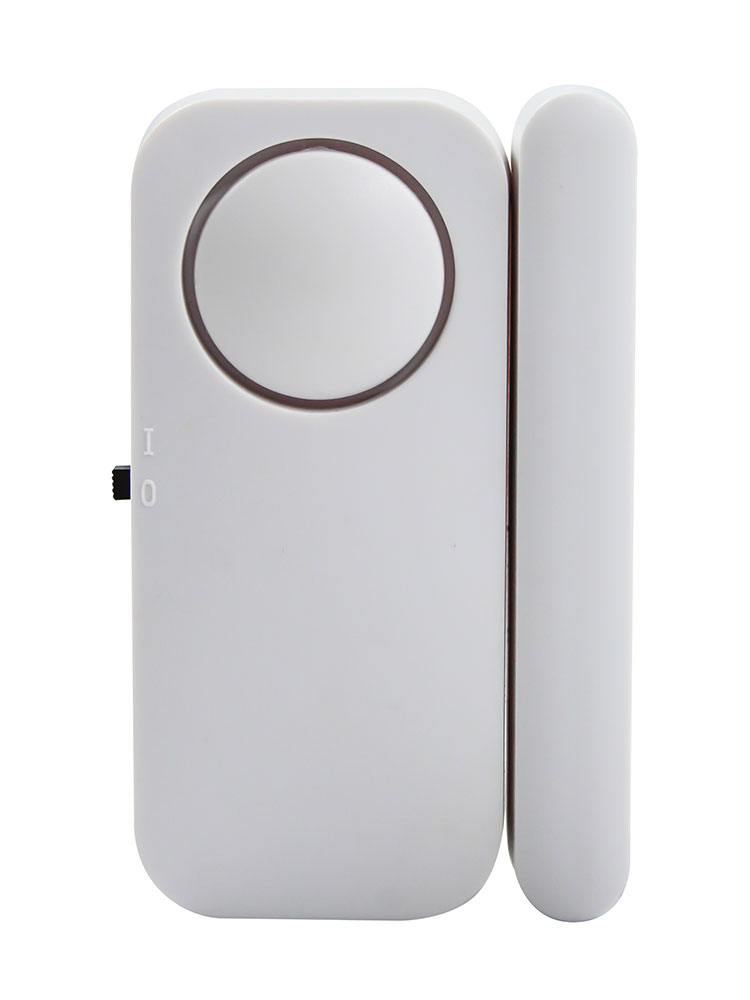 The magnetic contact switch automatically sounds the loud 90dB alarm when the door or window is opened.