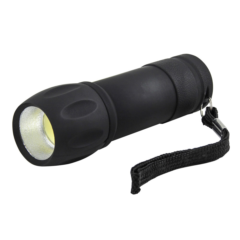 Featuring a powerful 2W COB LED powered by 3 x AAA batteries. The Soft feel torch body fitted with wrist strap.