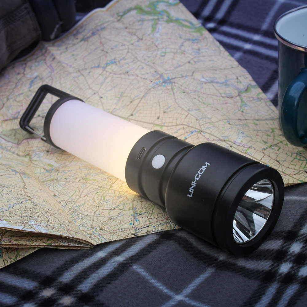 This rechargeable torch features a powerful 1W LED beam and a 3 LED warm light integrated lantern.
