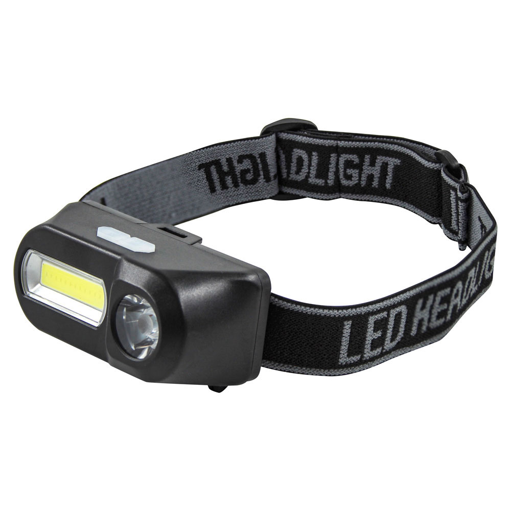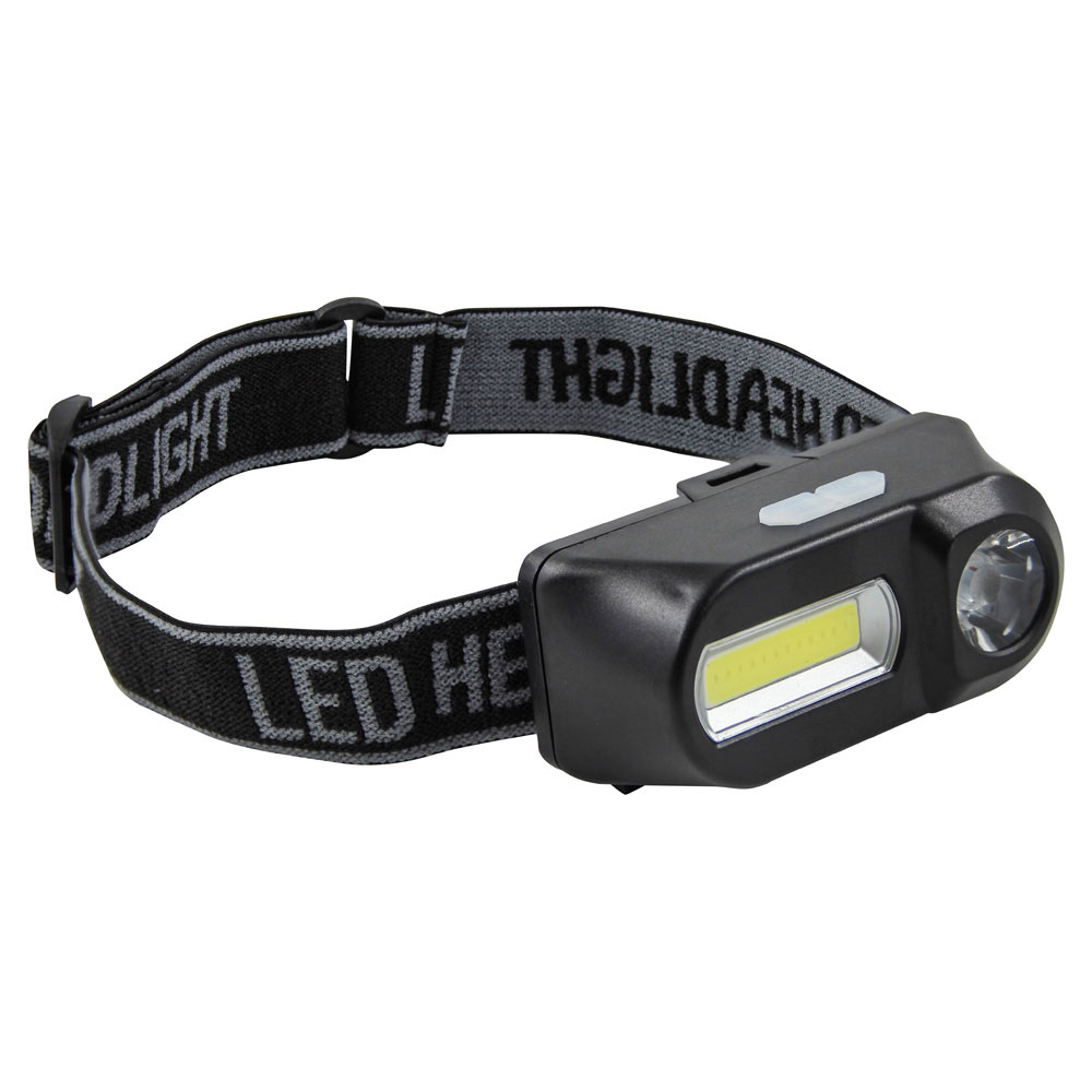High power rechargeable head torch with a powerful 1W LED spotlight and high power 1W COB LED floodlight.
