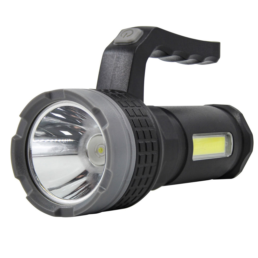 This powerful rechargeable spotlight with integrated lantern features a 200 lumen light output.